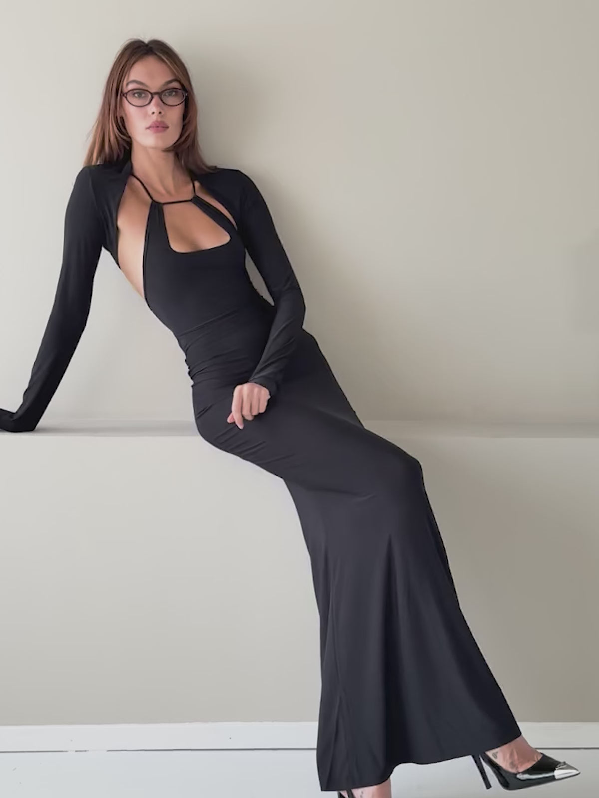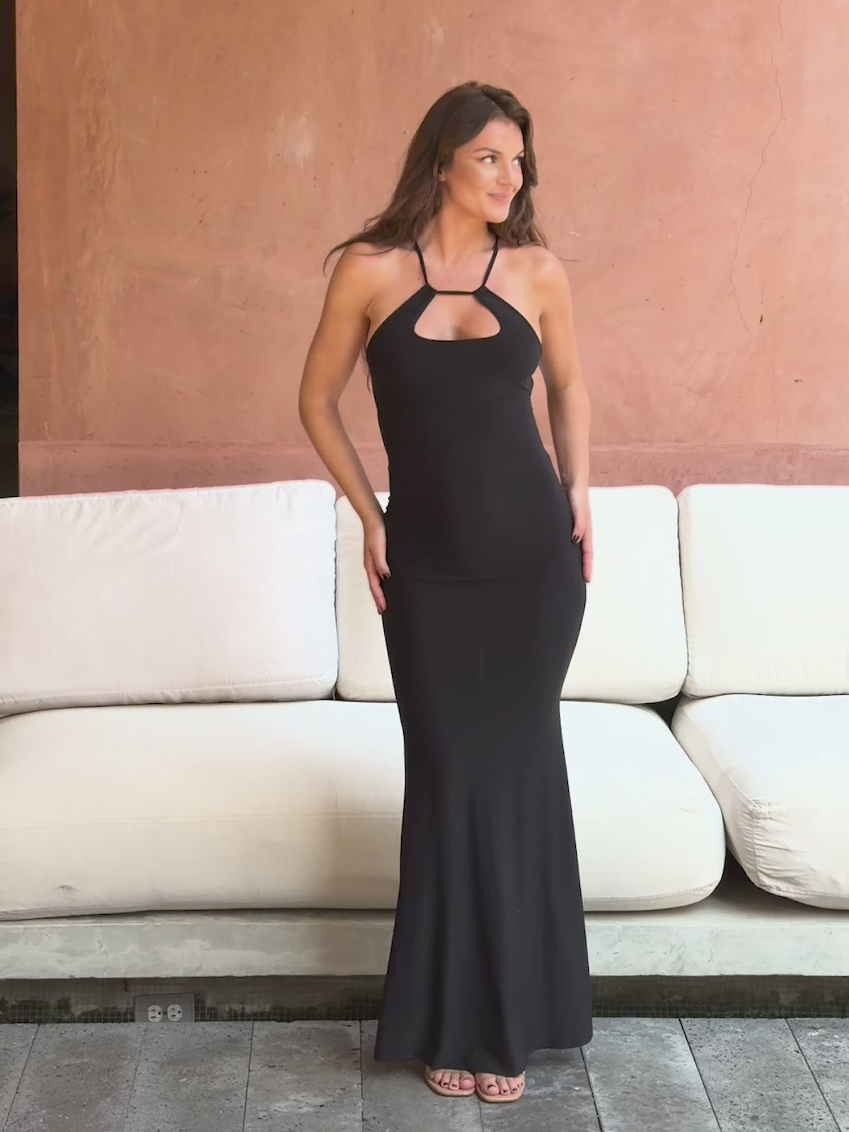 Cia owns the night. The sculpted fit and striking neckline create a confident, feminine line that feels both elegant and a little untouchable. The open, strappy back ties let you adjust the fit and add that subtle drama as you move. I wear her with high heels and a bold lip. Effortless, sensual, unforgettable.